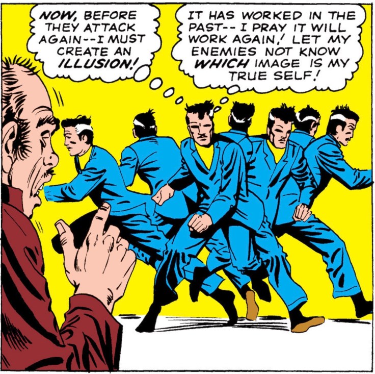 The next issue is entirely about Dr. Strange’s escape from Hong Kong which is a welcome change of pace. You really feel like the stakes have been raised because Strange is choosing to flee instead of fight. He is stumped as to how Mordo grew so powerful in a short amount of time. As he tries to navigate the city by foot to get to the airport and get back to New York, he is spotted by several of the evil sorcerers that are combing the streets. Dr. Strange uses his magic to create multiple illusions of himself moving in different directions which is a nice visual (and would be repeated many times here and with other heroes later). He does eventually reach a plane and uses astral projection to distract his pursuers as it takes off to the skies and heads to New York.