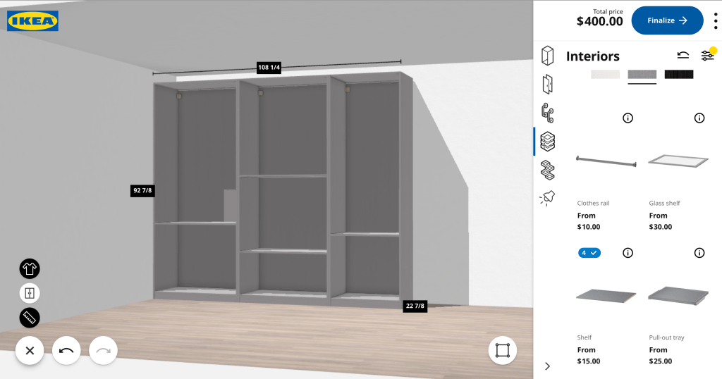 To look for solutions I went to the internet. I did a lot of searches for Drawer Box comic shelves and was having trouble coming up with anything. I started to consider just buying my own raw materials and creating something when I finally came across a brief page on Pinterest about how the PAX closet system from IKEA was able to fit the Drawer Boxes pretty well. I checked the IKEA site and they conveniently had a very robust designer application on the website that allowed me to take the modular parts of the closet system and construct exactly what I need. The precise measurements allowed me to feel confident that it would work before I blindly shipped about $500 of materials to my place.
